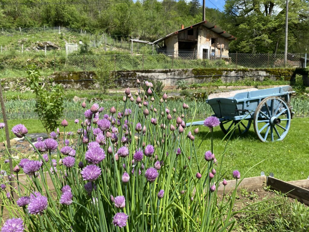 Depuis 2024 nous produisons du Cresson de Fontaine grâce à La Doye, ce joli ruisseau qui prend sa source à seulement 1km et qui passe sur notre terrain.